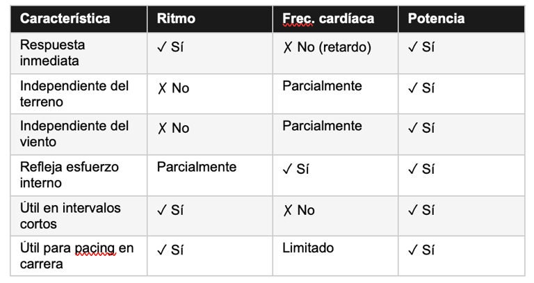 Abandonar el ritmo y la frecuencia cardíaca. La potencia no sustituye a estas métricas, las complementa. El enfoque más sólido combina las tres, usando cada una en el contexto donde aporta más información.